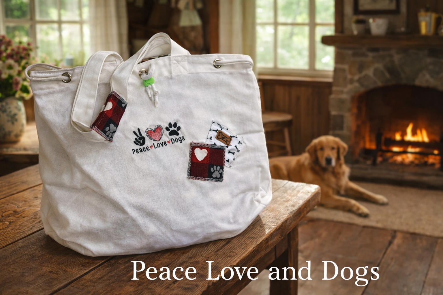 Peace Love Paws Drawstring Tote
